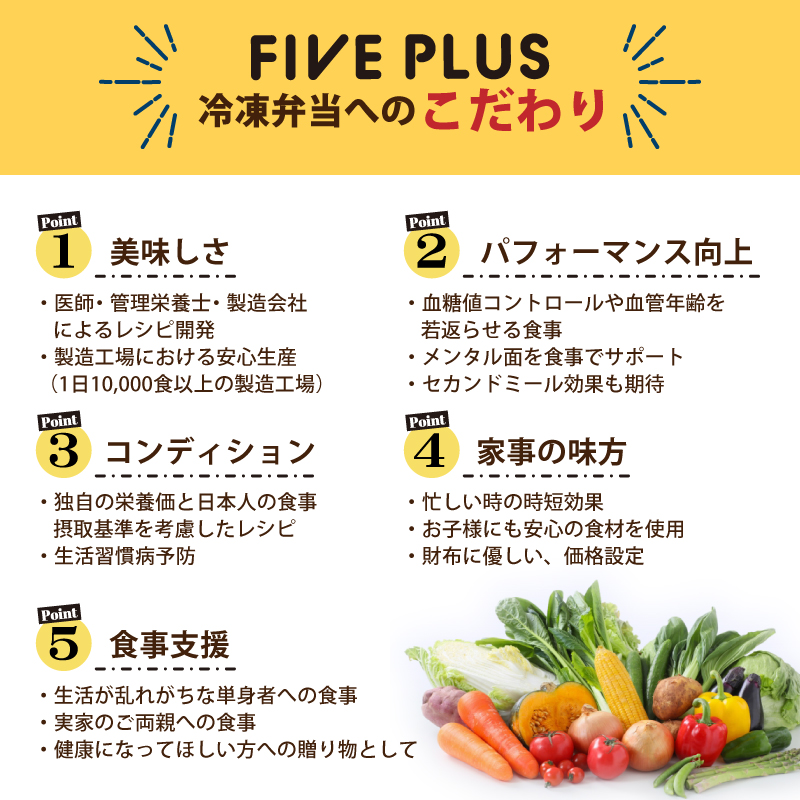 医師監修!健康寿命を5年延ばすことを目指した健康弁当【ファイブプラス 冷凍弁当】