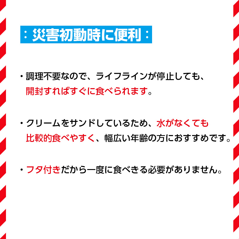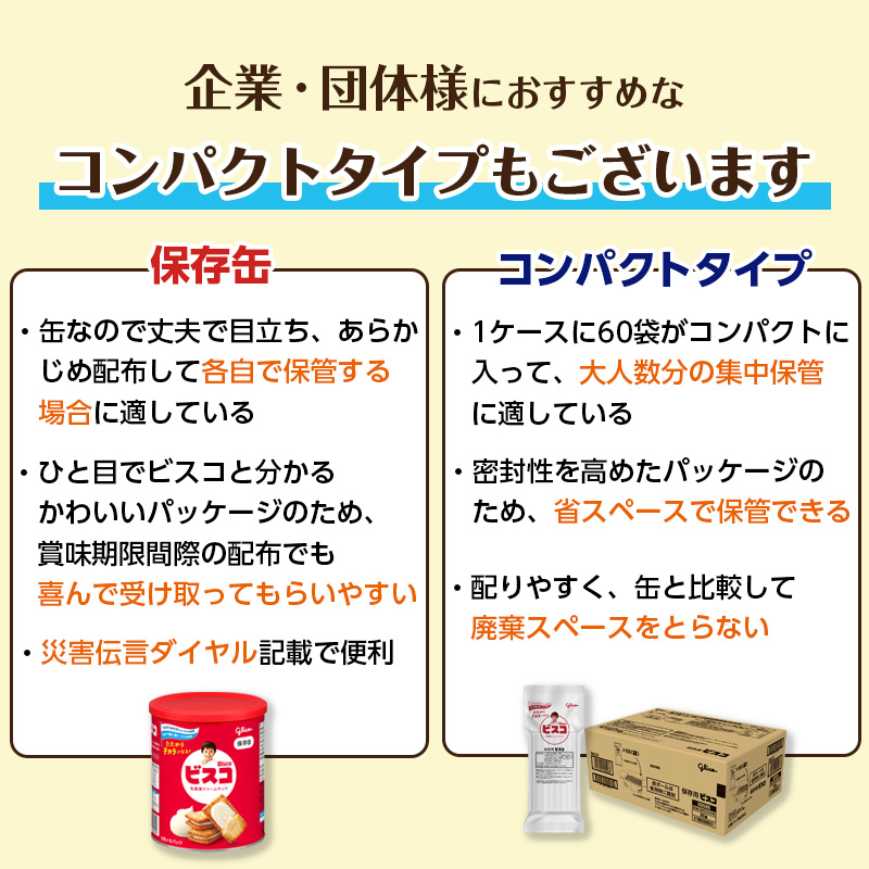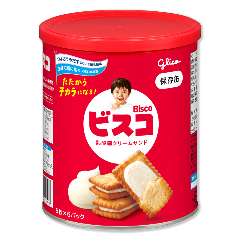 ロングセラーのビスコが保存缶になりました。ビスコは、子供が喜ぶ・おいしそう等の理由から高く支持されています。クリームサンドビスケットで食べやすく、幅広い年齢の方におすすめです。また5枚ずつの分包が6袋入で、分けやすくなっています。卵は使用していません。