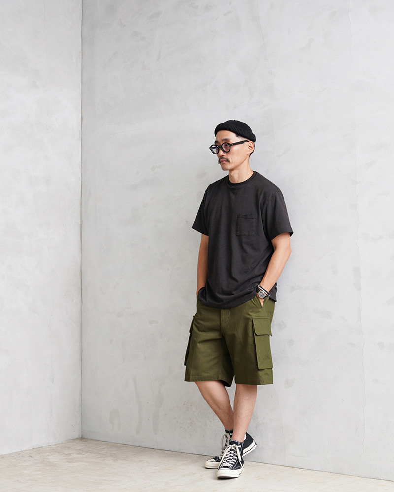 フランス軍で第二次世界大戦後に開発・採用されたM-47カーゴパンツを、デイリーづかいしやすいショーツスタイルにアップデートしたアイテムになります。