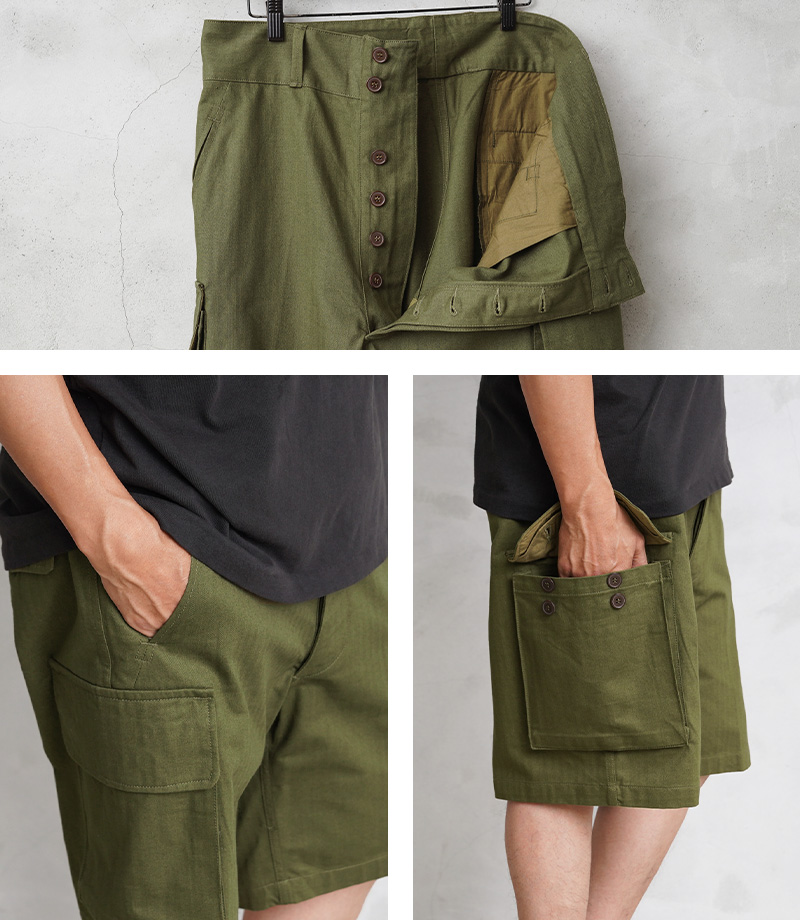 10035 FRENCH ARMY M-47 カーゴショートパンツ HBT(ヘリンボーンツイル)